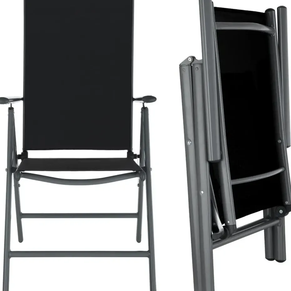 Deze elegante tuinstoelen met hoge rugleuning zijn ideaal voor ontspannende uurtjes in de tuin of op het terras. Het synthetische gaas is duurzaam, past zich perfect aan het lichaam aan en zorgt voor een goede ventilatie tijdens het zitten. De rugleuning is verstelbaar in zeven kantelniveaus en bovendien zijn de stoelen vederliccht, omdat het basisframe van aluminium is.