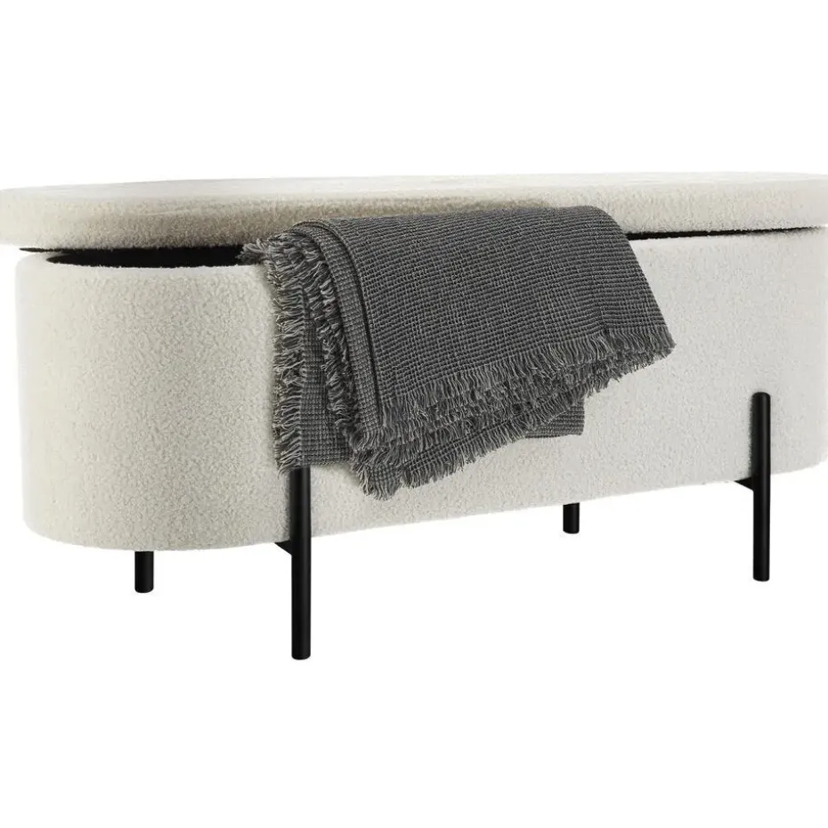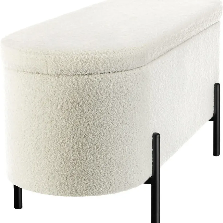 - Gezellige bank met opbergruimte met bouclé-stof in knusse scandi-stijl