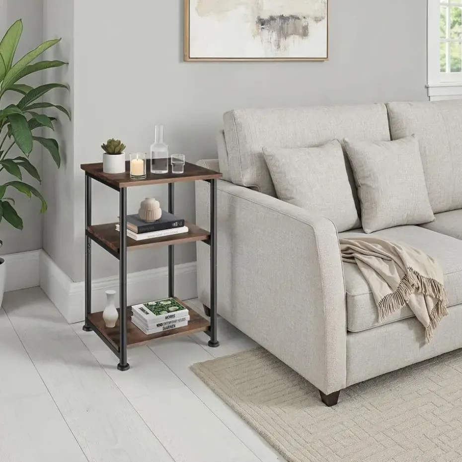 - Handig bijzettafeltje met drie planken in ruige industriële stijl