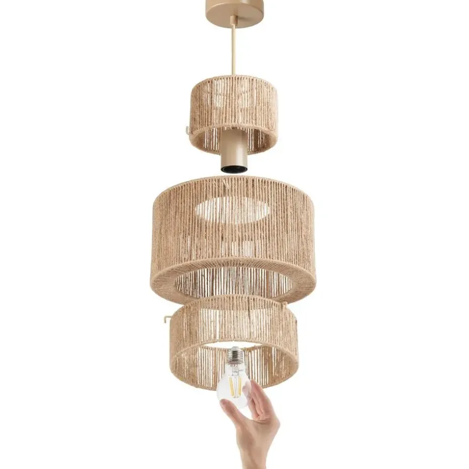 - Handgemaakte 3-laagse lampenkap met fijne netstructuur van natuurlijk jute