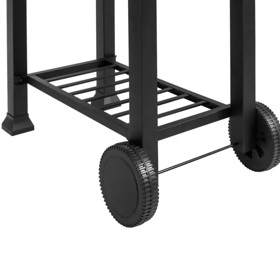 - Variabele barbecuetemperatuur aangezien de houtskoolkuip met een hendel in de hoogte verstelbaar is