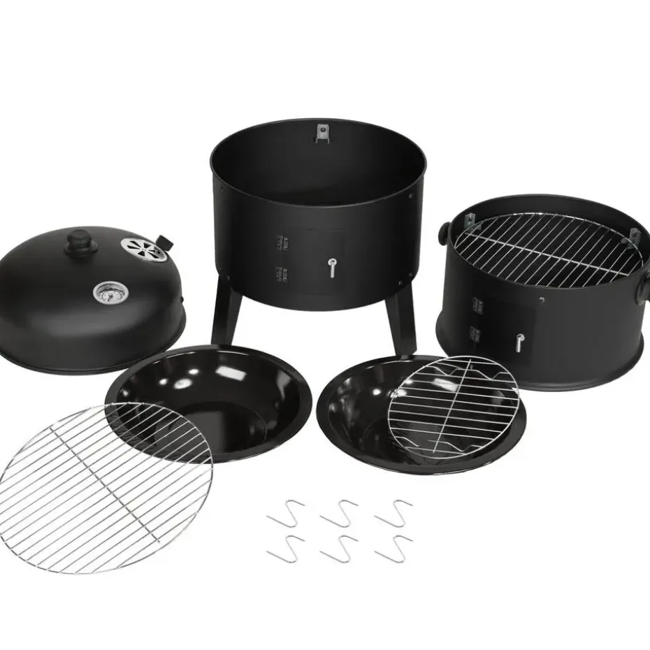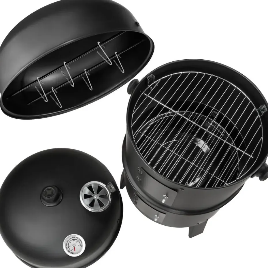 Onze veelzijdige houtskoolbarbecue met 3 verschillende verdiepingen voor grillen, braden en roken is een must-have voor alle BBQ-fans. De twee roosters (Ø 37 cm) bieden veel ruimte om vlees en gerechten voor te bereiden voor familie, vrienden en buren. De deksel heeft een thermometer voor de temperatuurweergave. Met behulp van de praktische zijkleppen en het rooster bovenop kan de de temperatuur gemakkelijk worden geregeld. Met behulp van de geïntegreerde waterbak kun je de temperatuur constant laag houden; perfect voor het roken van vis of voor het stomen van groenten. De snelle opbouw en extreem eenvoudige bediening maken je barbecuefeest onvergetelijk! Let op: Montage vereist