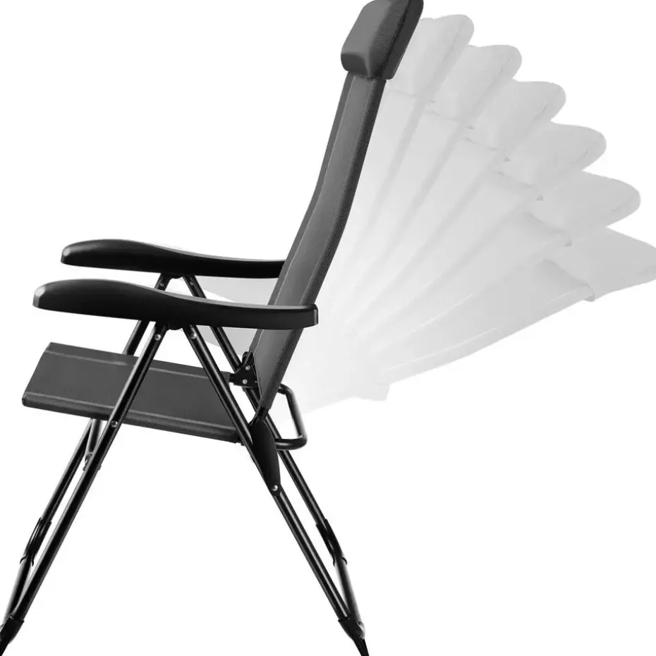 tectake Inklapbare campingstoel Müritz met hoofdkussen, aluminium, Antraciet