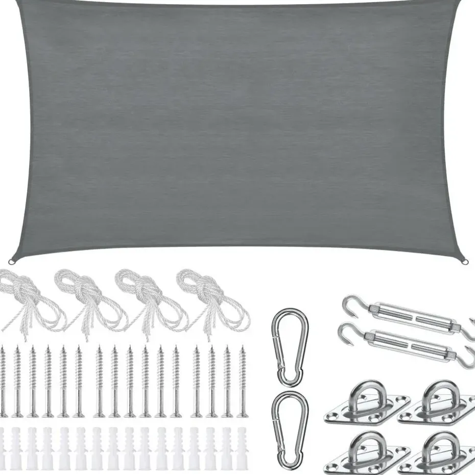 De ademende stof van scheurvast HDPE-materiaal biedt niet alleen een effectieve UV-bescherming, maar overtuigt ook door zijn enorme weerstand tegen wind en regen. De roestvrije roestvrijstalen ringen aan de uiteinden zijn stevig ingenaaid en zorgen voor een veilige en stabiele bevestiging. Of het nu aan bomen, palen of andere vaste punten is – dankzij het meegeleverde montagemateriaal van spankoorden, spanschroeven, wandbeugels, karabijnhaken, schroeven en pluggen is de installatie in een handomdraai voltooid.