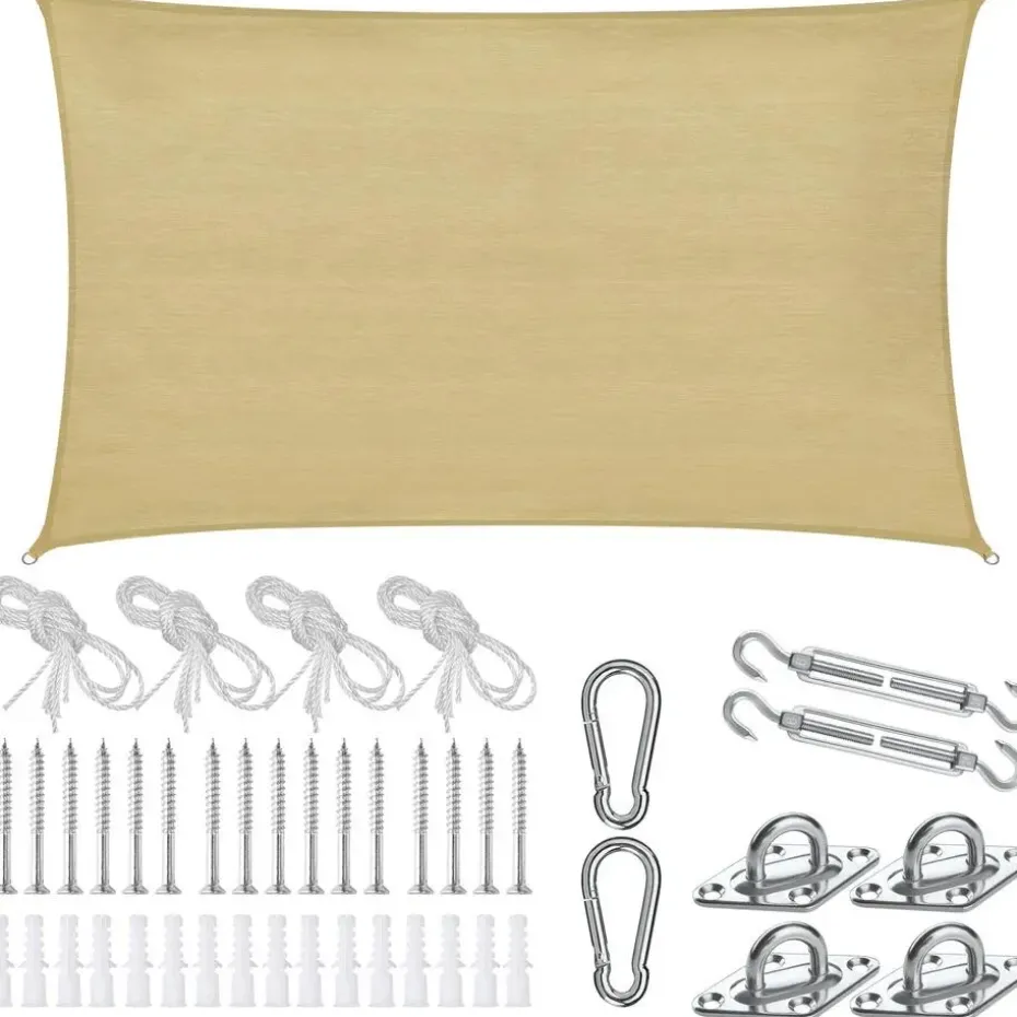De ademende stof van scheurvast HDPE-materiaal biedt niet alleen een effectieve UV-bescherming, maar overtuigt ook door zijn enorme weerstand tegen wind en regen. De roestvrije roestvrijstalen ringen aan de uiteinden zijn stevig ingenaaid en zorgen voor een veilige en stabiele bevestiging. Of het nu aan bomen, palen of andere vaste punten is – dankzij het meegeleverde montagemateriaal van spankoorden, spanschroeven, wandbeugels, karabijnhaken, schroeven en pluggen is de installatie in een handomdraai voltooid.