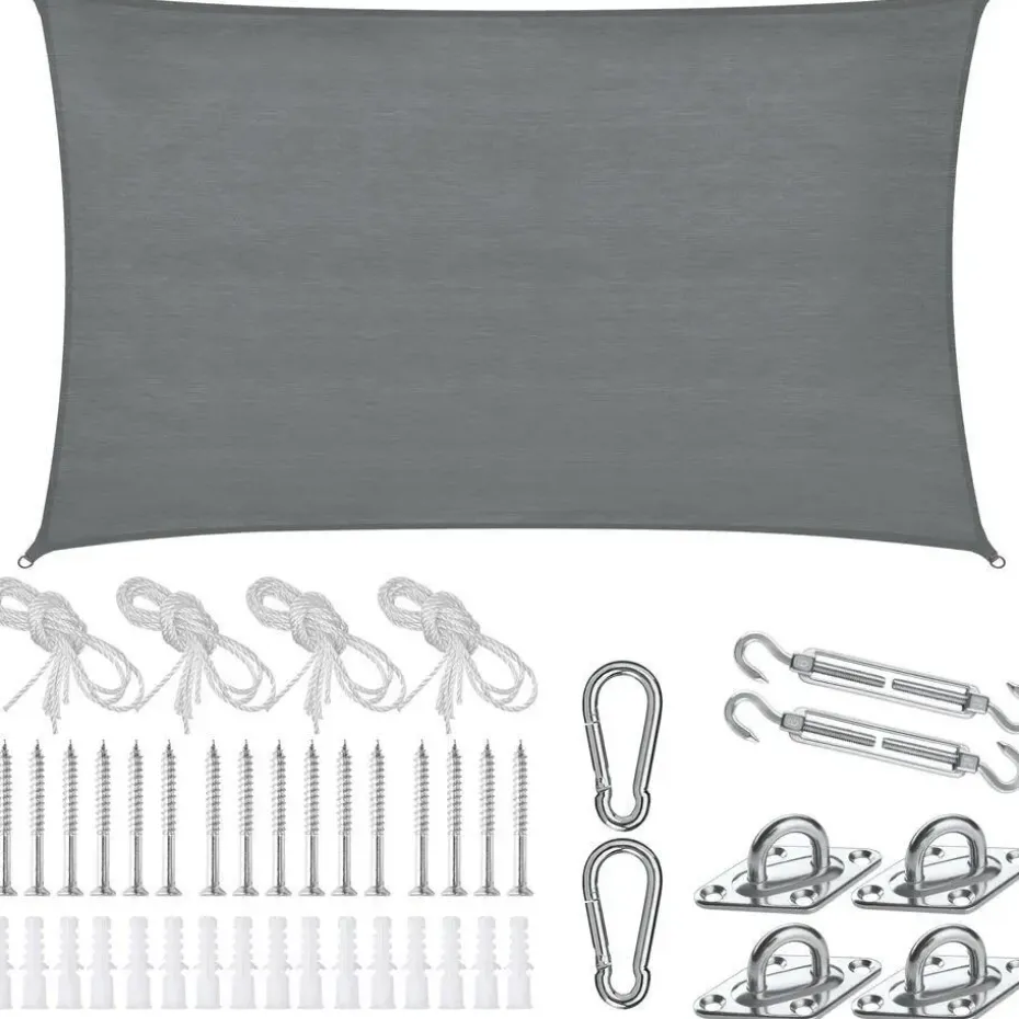 De ademende stof van scheurvast HDPE-materiaal biedt niet alleen een effectieve UV-bescherming, maar overtuigt ook door zijn enorme weerstand tegen wind en regen. De roestvrije roestvrijstalen ringen aan de uiteinden zijn stevig ingenaaid en zorgen voor een veilige en stabiele bevestiging. Of het nu aan bomen, palen of andere vaste punten is – dankzij het meegeleverde montagemateriaal van spankoorden, spanschroeven, wandbeugels, karabijnhaken, schroeven en pluggen is de installatie in een handomdraai voltooid.