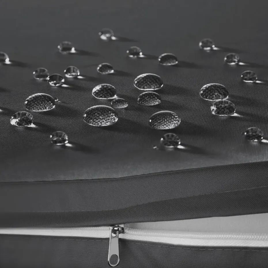 Om de onderhoudsvriendelijke set veilig op te bergen, schuif je de afzonderlijke elementen bij elkaar en trek je de meegeleverde hoes eroverheen. Zo bescherm je de meubels na gebruik op het terras tegen vuil van bladeren, dieren en andere invloeden, en bewaar je ze in de garage of kelder tijdens de winter tegen stof.