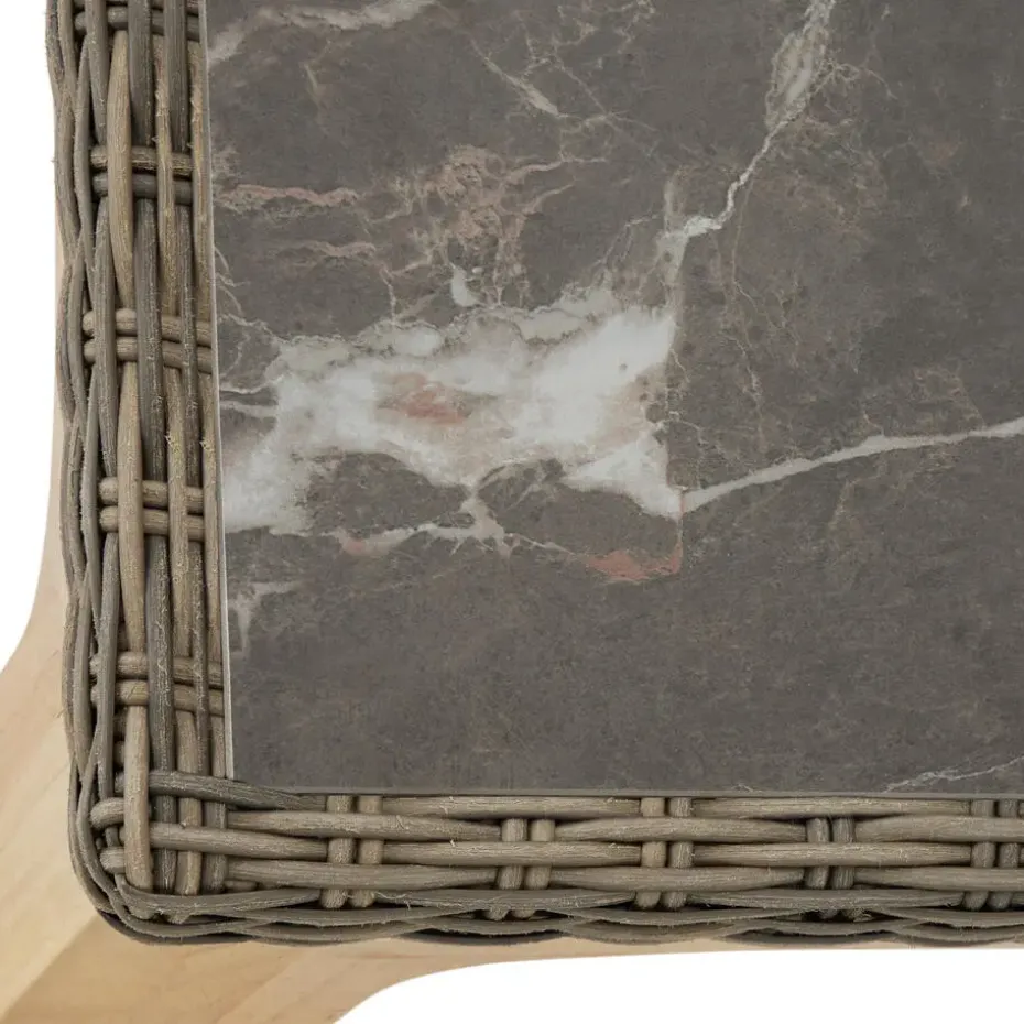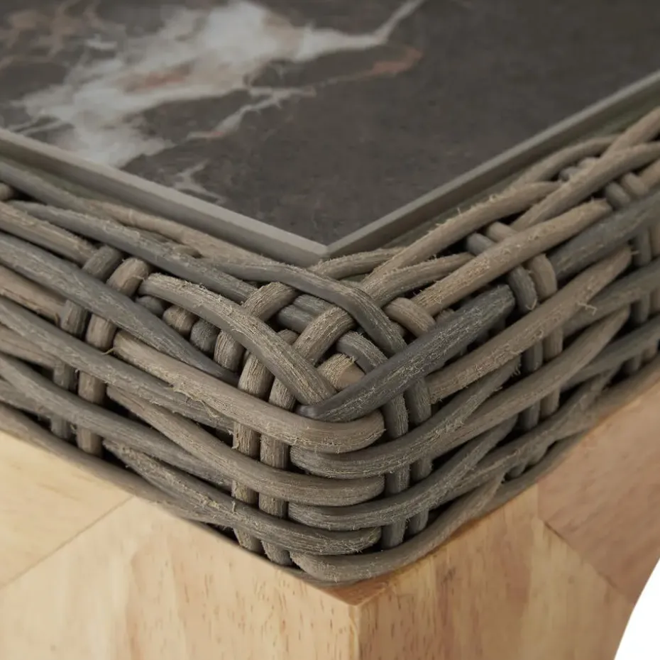 - Wicker tafel met 2 steengoedplaten