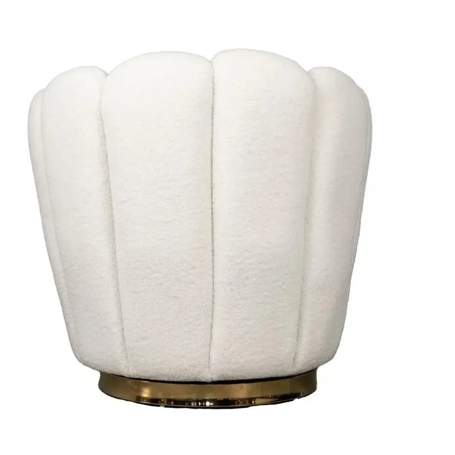 Materiaal: De fauteuil is gemaakt van een combinatie van metaal voor het onderstel en teddy stof/textiel voor de zitting, wat zorgt voor een comfortabele en stijlvolle zitervaring.