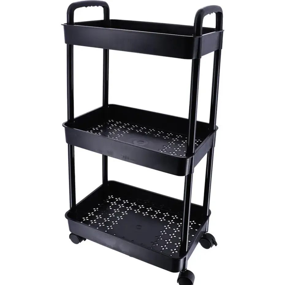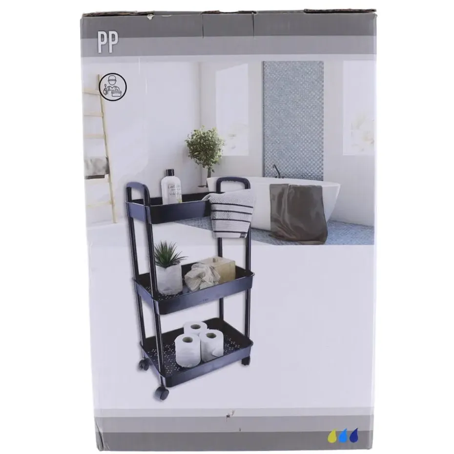 Op zoek naar een handige en hippe opbergoplossing? Deze Tendance trolley heeft alles wat je nodig hebt! Met drie ruime lagen biedt hij genoeg ruimte voor je spullen, of je nu in de keuken of badkamer aan het werk bent. Het strakke zwarte design maakt ‘m een echte eyecatcher, terwijl de wieltjes ervoor zorgen dat je hem makkelijk verplaatst – van keuken tot badkamer en weer terug. Compact, praktisch en stijlvol: deze trolley heeft alles in huis om je ruimte netjes en georganiseerd te houden! Met deze trolley rolt je organisatie tot in de puntjes – stijlvol en praktisch in een! Afmeting trolley: ca. 38 x 26 x 77 cm. Materiaal: kunststof. Merk: Tendance.