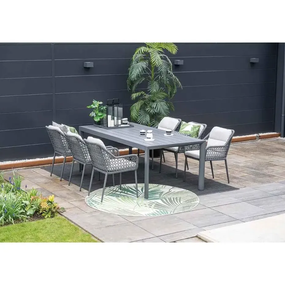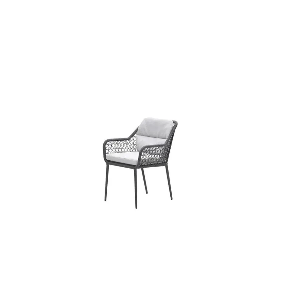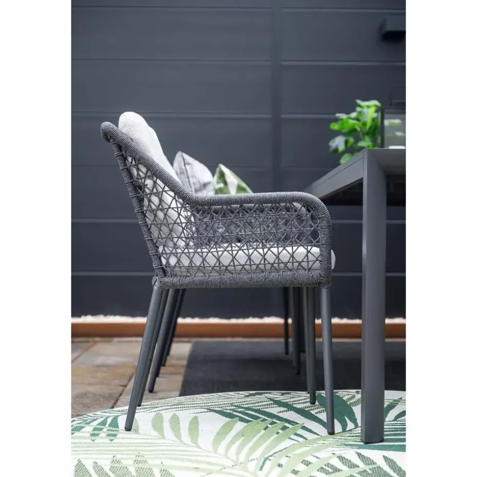 Toledo dining fauteuil – carbon black – rope dark grey – valley sand