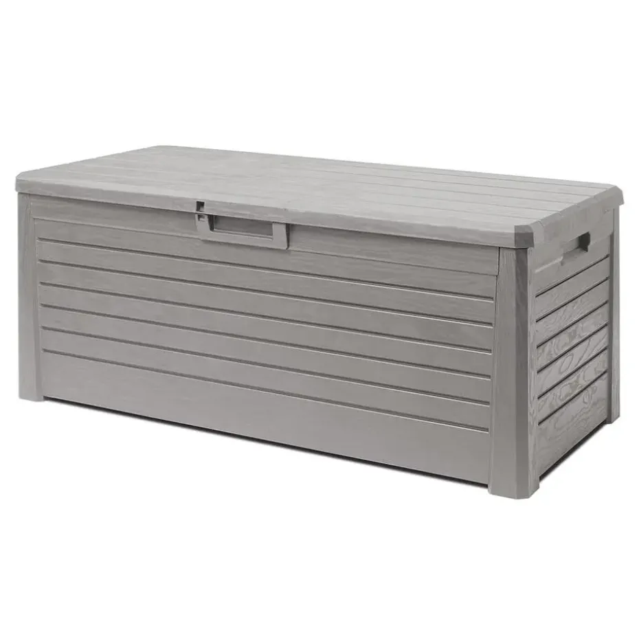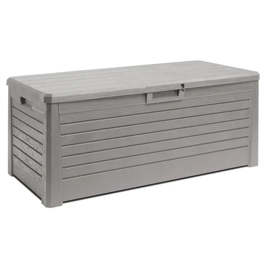 De box heeft een opslagcapaciteit van maar liefst 550 liter. Deze handige Toomax opbergbox is gemaakt van kunststof en is heel makkelijk in elkaar te zetten. De box kan goed tegen regenwater, maar is niet volledig waterdicht. De opslagcapaciteit is 550 liter gemaakt van stevige kunststof opbergbox met houtlook. Voorzien van handgrepen en een gasveer in de deksel.