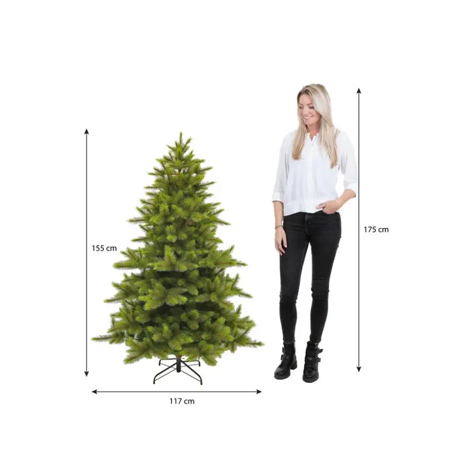 De Wyoming kunstkerstboom van Triumph Tree brengt een vleugje natuur in je huis. Deze groene kunstboom heeft 460 dennentakjes in een groene kleur, waardoor hij net lijkt op een echte spar uit het bos. De harde naalden zijn gemaakt van hoogwaardige PVC-materialen, wat zorgt voor een volle en natuurlijke uitstraling. Dankzij de inhaakconstructie is de boom eenvoudig op te zetten door de takken op kleurcode aan de stam te haken. De Wyoming kunstkerstboom is 155 cm hoog en heeft een diameter van 117 cm. Deze voldoet aan de strengste Europese en Franse wetgeving voor brandveiligheid en de aanwezigheid van zware metalen. Op de kunstkerstboom zit 10 jaar garantie, zodat je jarenlang kunt genieten van een zorgeloze kerst met de Wyoming kunstkerstboom van Triumph Tree!