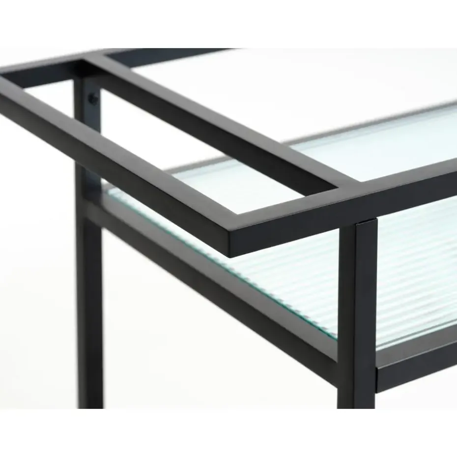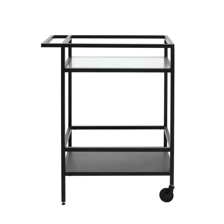 Materiaal: De Trolley Bronco is vervaardigd uit een combinatie van glas en metaal. Deze materialen zorgen niet alleen voor een stevige constructie, maar geven de trolley ook een moderne en industriële uitstraling. Het glas biedt een elegante touch, terwijl het metaal zorgt voor stabiliteit en duurzaamheid.