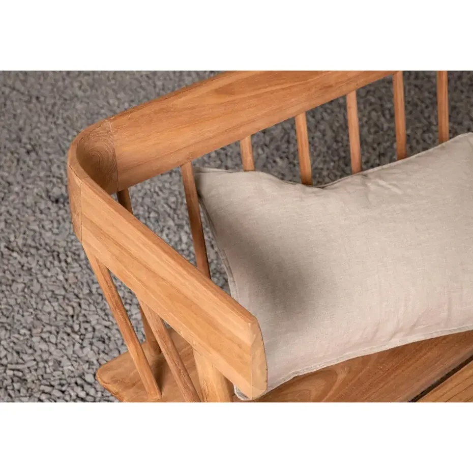 Materiaal: Deze tuinbank is vervaardigd uit teakhout, een materiaal dat bekend staat om zijn robuustheid en weerbestendigheid. Teakhout is ideaal voor buitenmeubilair omdat het bestand is tegen de elementen en na verloop van tijd een prachtige patina ontwikkelt.