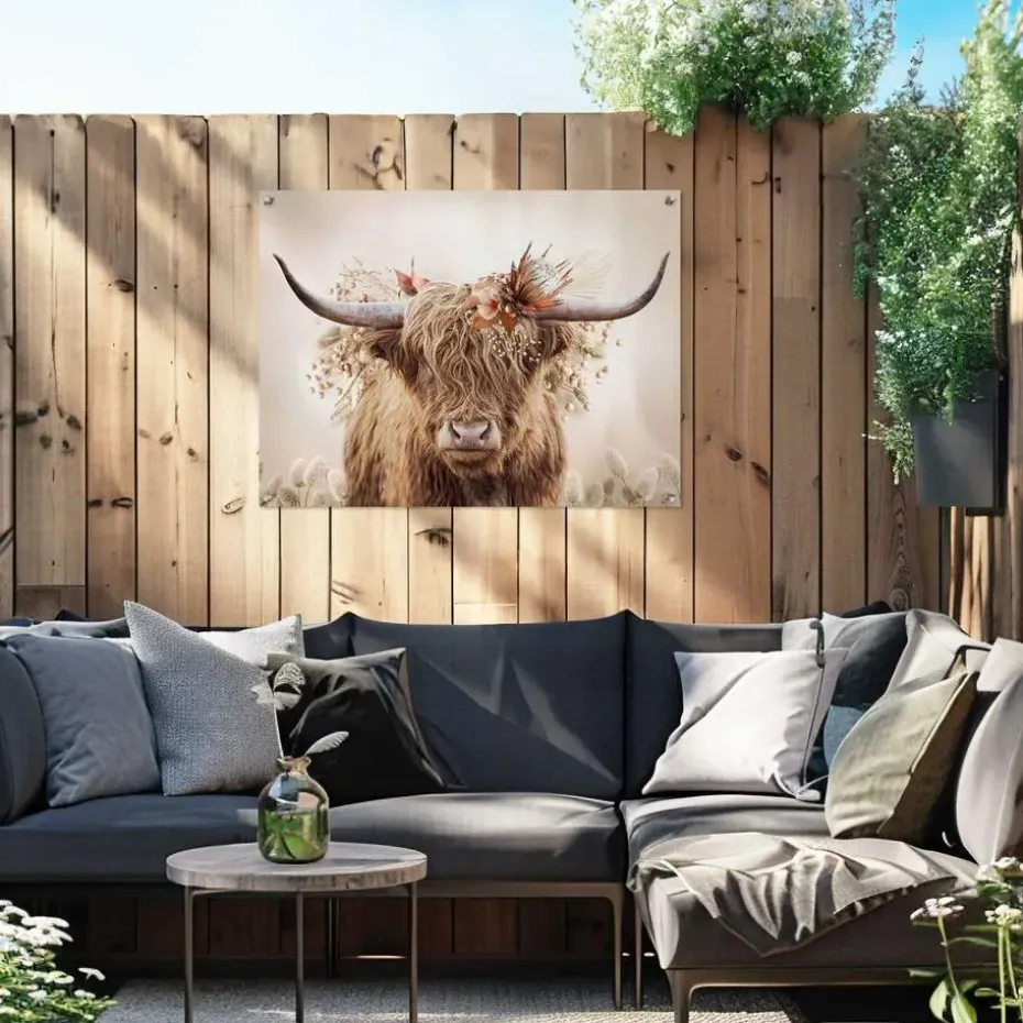 Onze tuinposter geeft je tuin, terras of balkon in één keer een nieuwe uitstraling. In een handomdraai maak je van een saaie muur of schutting een echte blikvanger. De poster wordt geprint met een 6-kleuren latexprinter op mat polyester canvas. Dit doek is geschikt voor buitengebruik en bestand tegen zonlicht en regen. Ophangen is eenvoudig dankzij de voorgemonteerde kunststof ringen; gebruik hiervoor schroeven, spijkers of spanelastieken (niet meegeleverd). Voor een extra lange levensduur hang je de tuinposter bij voorkeur onder een veranda of afdak. Let op: na verloop van tijd kan de afbeelding door direct uv-licht verkleuren. Kenmerken