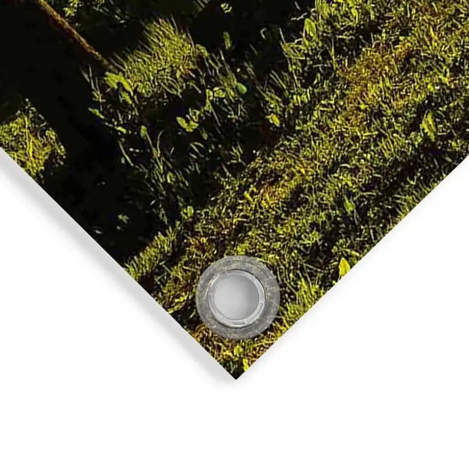 Onze tuinposter geeft je tuin, terras of balkon in één keer een nieuwe uitstraling. In een handomdraai maak je van een saaie muur of schutting een echte blikvanger. De poster wordt geprint met een 6-kleuren latexprinter op mat polyester canvas. Dit doek is geschikt voor buitengebruik en bestand tegen zonlicht en regen. Ophangen is eenvoudig dankzij de voorgemonteerde kunststof ringen; gebruik hiervoor schroeven, spijkers of spanelastieken (niet meegeleverd). Voor een extra lange levensduur hang je de tuinposter bij voorkeur onder een veranda of afdak. Let op: na verloop van tijd kan de afbeelding door direct uv-licht verkleuren. Kenmerken