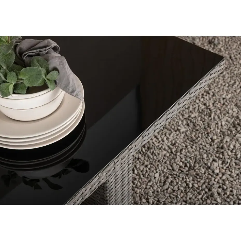 Materiaal: Het tafelblad van de Fjôrd Tuintafel Padova is gemaakt van glas, wat niet alleen een luxe uitstraling geeft, maar ook gemakkelijk schoon te maken is. Het onderstel is vervaardigd uit wicker, een materiaal dat bekend staat om zijn duurzaamheid en weerbestendigheid. Deze combinatie zorgt voor een stevige en stijlvolle tuintafel.