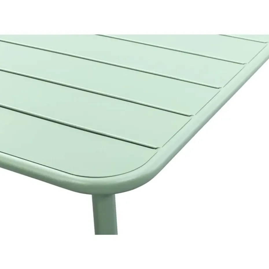 De tuintafel Vence is gemaakt van metaal met een lichtgroene afwerking. De tafel is weersbestendig en de bijpassende stoelen vind je in dezelfde serie. Met een afmeting van 72x150x90 cm is deze tafel geschikt voor 6 personen. Dus nodig de gasten maar vast uit en geniet met de tafel Vence metaal lichtgroen van de zomer.