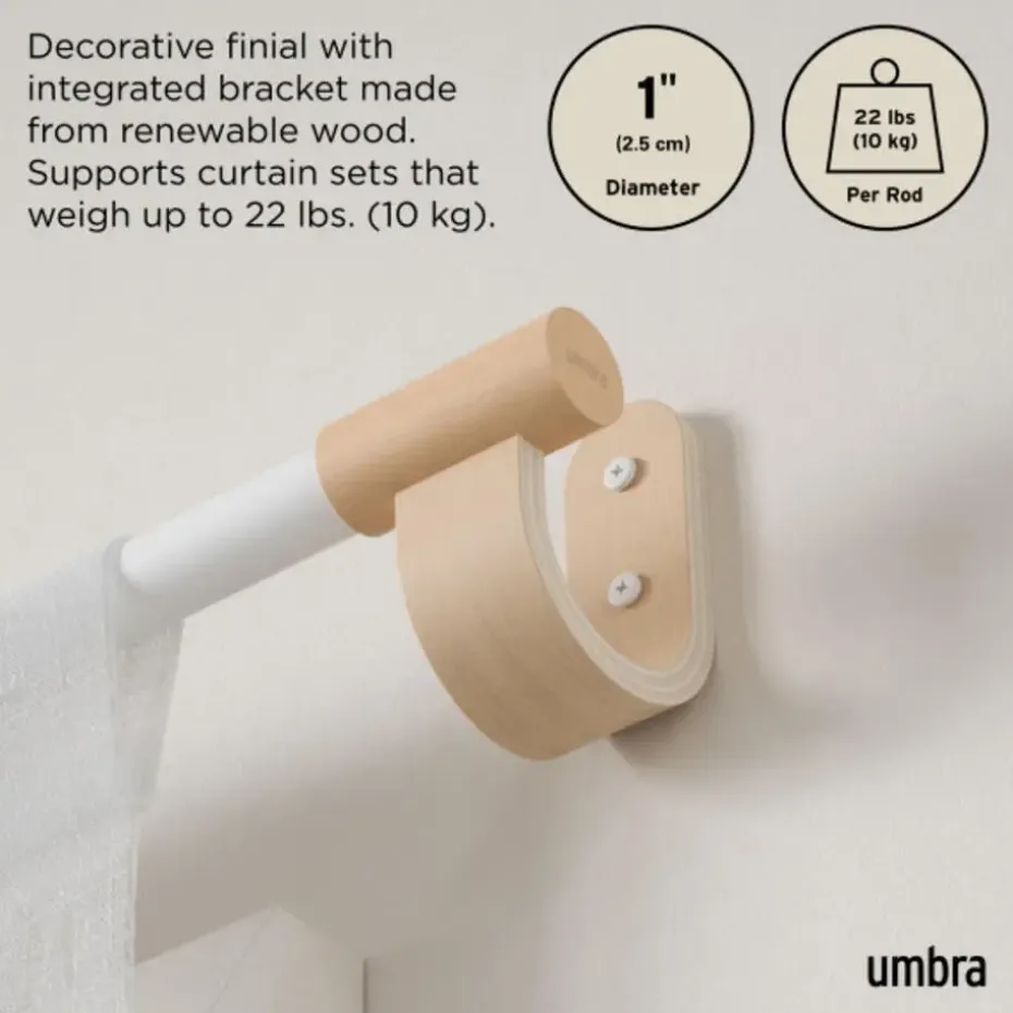 COMPLETE MODERNE GORDIJNROEDESET: Bellwood wordt geleverd met alles wat je nodig hebt voor een naadloze montage. Voor een gordijnset tot 10 kg.INCLUSIEF DECORATIEVE WANDBEUGEL: Bellwood heeft een moderne witmetalen roede (2,5 cm dik) en eindknoppen met houten afwerking en een bijpassende wandbeugel voor een opvallende lookGESCHIKT VOOR VEEL VERSCHILLENDE RAMEN: De Bellwood kan gemakkelijk versteld worden van 107 tot 305 cm dankzij de telescopische roede. Geschikt voor ramen van 86 tot 284 cm.EENVOUDIG TE MONTEREN: Bellwood is eenvoudig te monteren en wordt geleverd met alle montagebenodigdhedenORIGINEEL ONTWERP & TEVREDENHEID GEGARANDEERD: Ons team van internationale ontwerpers geeft alledaagse voorwerpen een doordacht, creatief en orgineel ontwerp. Umbra-producten gaan lang mee dankzij het gebruik van hoogwaardige materialen. Kies Umbra, kies het origineel