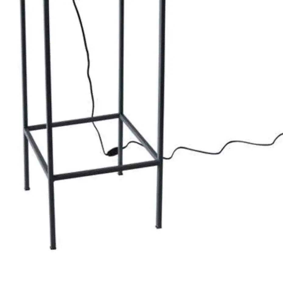 Metalen vloerlamp die is voorzien van een zwart stoffen snoer met schakelaar. De hoogte is 120 cm en de breedte is 30 cm. Geschikt voor een lichtbron E27 van maximaal 60 Watt (excl.).