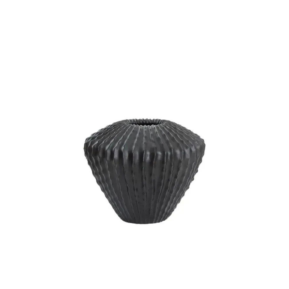 Introduceer een vleugje tijdloze elegantie en interessante textuur op uw bijzettafel met de Cacti vaas. Dit unieke stuk, gemaakt van hoogwaardig kunststof met een zwarte afwerking, meet Ø55cm en heeft een prachtige geribbelde textuur die doet denken aan een cactus. Ondanks het gebruik van kunststof zorgt de antiek bronzen afwerking voor een look die zowel elegant als verfijnd is. Deze vaas is perfect voor het presenteren van bloemen, omdat de geribbelde textuur een vleugje visuele intrige toevoegt en het materiaal zorgt voor gemakkelijk onderhoud. Dit veelzijdige stuk voegt een vleugje moderne organische charme toe aan uw interieur en biedt een stijlvolle en functionele manier om uw bijzettafel te verfraaien.