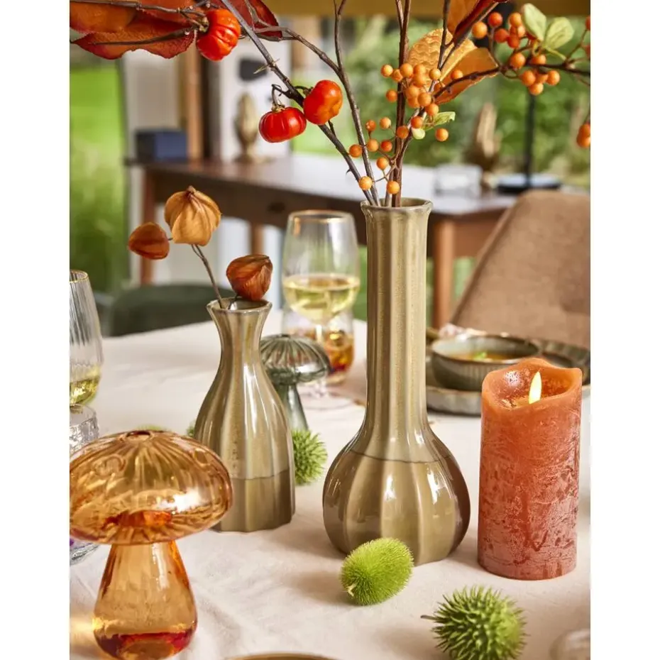 Ontdek de elegante Retro vaas in een groene kleur, ontworpen om je interieur sfeervol en gezellig te maken. Met zijn cilinder vorm en afmetingen van 27,5xØ12,5 cm, past deze keramieken vaas perfect in een moderne uitstraling. De Retro vaas combineert stijl en functionaliteit, waardoor het een ideale toevoeging is aan elke kamer. Plaats hem op een tafel of vensterbank om direct een warme en uitnodigende sfeer te creëren in huis.