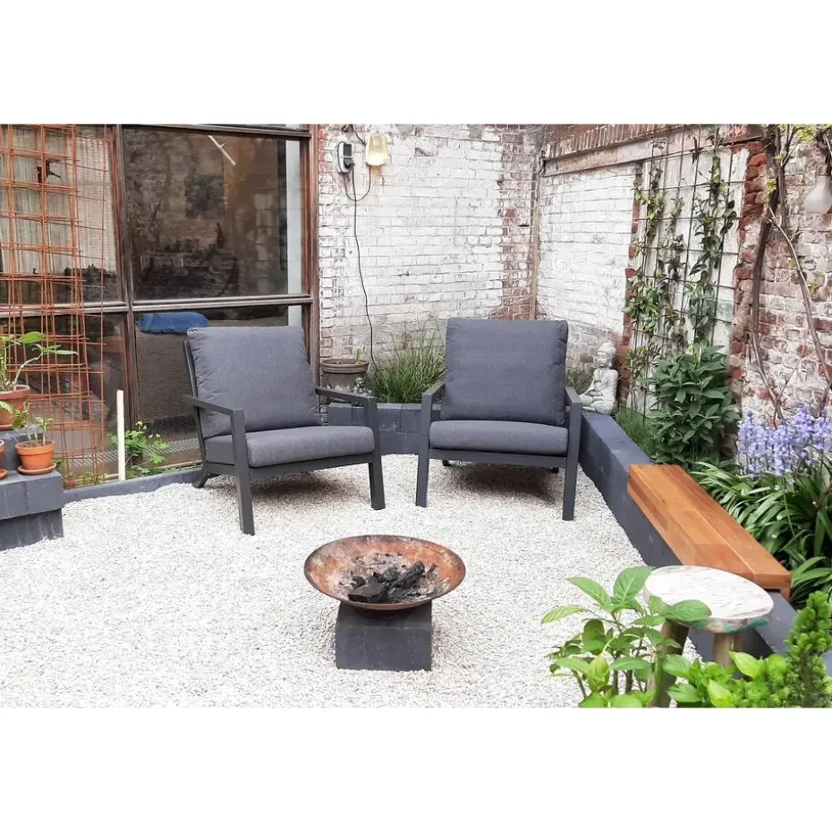 De Atlanta loungestoel heeft een strak design waardoor hij een perfecte match is voor de moderne tuin. Het frame is gemaakt van lichtgewicht aluminium en voorzien van een poedercoating in de kleur antraciet. Voordeel van aluminium is dat dit licht van gewicht is, niet kan gaan roesten en onderhoudsarm is. Daarnaast vormt dit materiaal een stevige basis. De antraciet kleurige kussens matchen perfect bij de frames. De afritsbare hoezen zorgen ervoor dat je de kussenshoezen uit kunt wassen wanneer deze vies zijn geworden. Bij geen gebruik adviseren wij om de kussens op een droge en geventileerde plek op te bergen, zo blijven ze langer mooi.