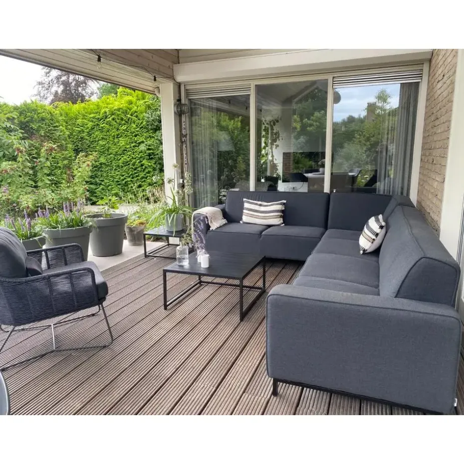 De Boavista loungebank wordt gekenmerkt door de vele verschillende mogelijkheden. Deze bank heeft namelijk verschillende losse delen die naar eigen wens aan elkaar gekoppeld kunnen worden. Deze loungebank wordt gesierd door een stevig aluminium onderstel. Een materiaal dat perfect is voor tuinmeubelen omdat het niet gaat roesten en geen onderhoud nodig heeft. Over het aluminium frame is Sunbrella stof aangebracht. Deze stof is van all weather kwaliteit en zorgt ervoor dat jouw loungebank heerlijk zacht is! Door de goed gevulde zitting ben je verzekerd van goed zitcomfort, een eigenschap die erg belangrijk is voor jouw loungebank.