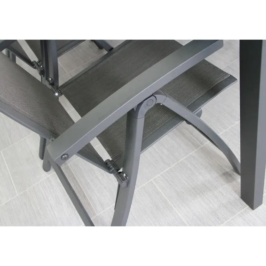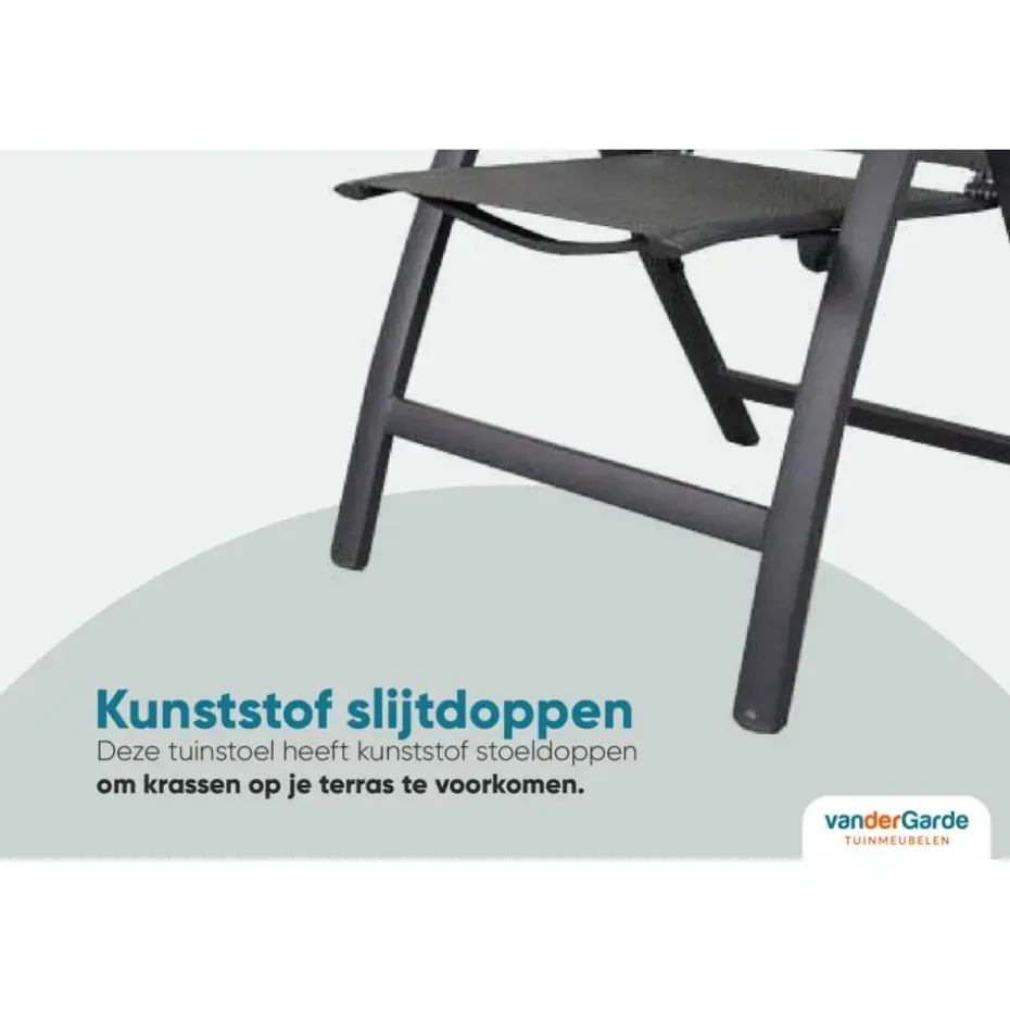 Het aluminium frame maakt de stoel stevig én licht van gewicht. De textileen zitting en rugleuning zijn weerbestendig, sneldrogend en makkelijk schoon te maken. Na gebruik klap je de Corsica eenvoudig in en berg je ‘m ruimtebesparend op. De slijtdoppen onderaan beschermen je terras tegen krassen. Praktisch, onderhoudsarm en klaar voor elk buitenseizoen.