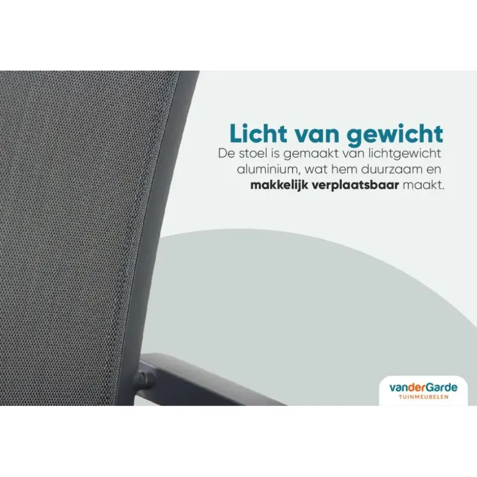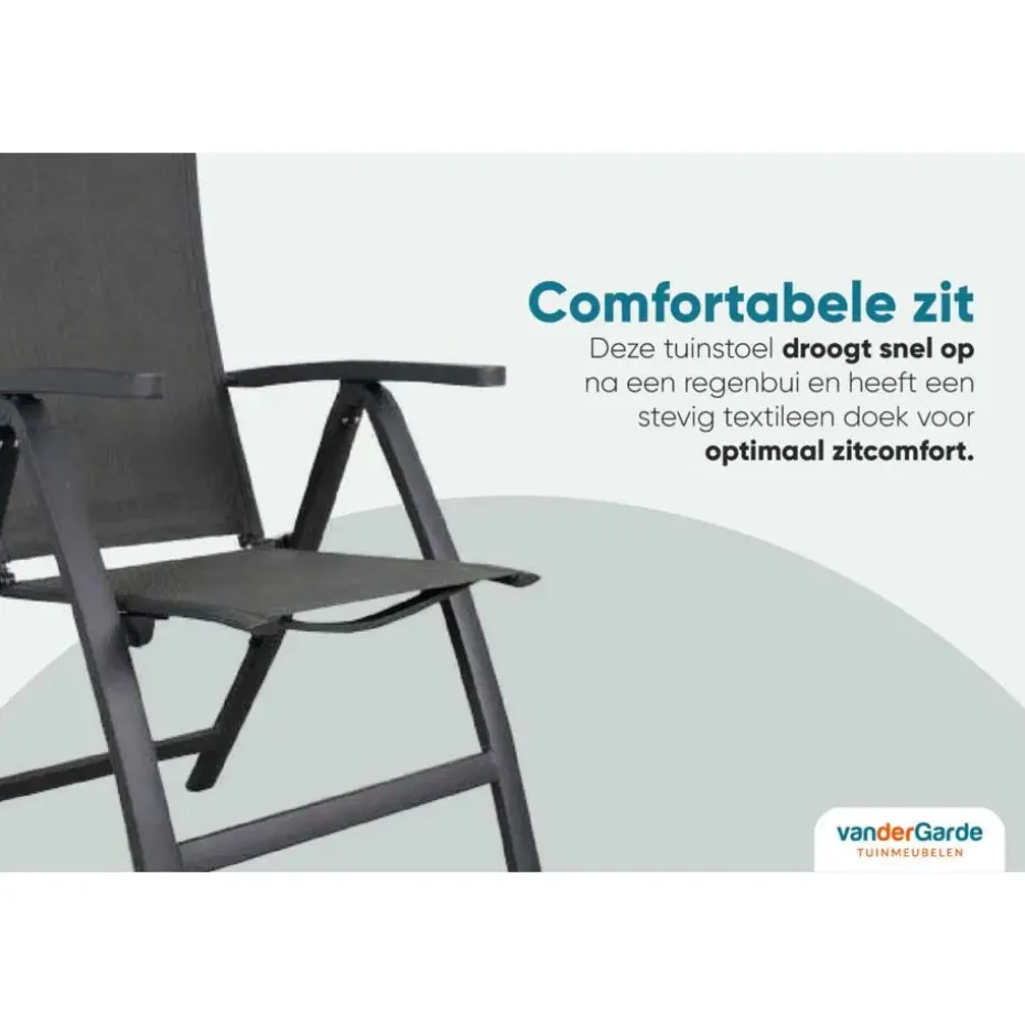 Een fijne, voordelige tuinstoel die doet wat je verwacht. De Corsica verstelbare tuinstoel is perfect voor wie comfortabel wil zitten zonder gedoe. Dankzij de verstelbare rugleuning kies je zelf of je rechtop aan tafel zit of lekker achterover leunt in de zon. De luchtige zitting van textileen vormt zich prettig naar je lichaam en dat allemaal zonder kussen. Shop eenvoudig online!