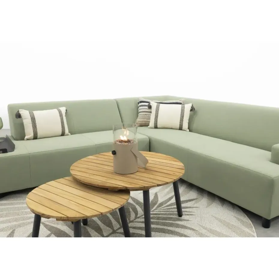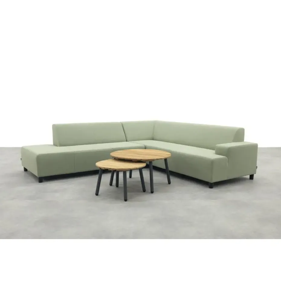 Elke zomer hetzelfde gedoe? Kussens naar binnen bij regen en een bank die verkleurt in de zon? Tijd voor verandering. Met deMalaga hoekbank loungeset chaise longue in zacht groen creëer je een tuin waarin ontspanning vanzelfsprekend is. De royale hoekbank nodigt uit tot liggen, loungen, eten of lekker lang natafelen. Combineer de set met de ronde Mindo loungetafels van teakhout en aluminium voor een warme, moderne uitstraling. Het duurzame hout en onderhoudsvrije frame maken deze tafels ideaal voor buitengebruik, terwijl het karaktervolle design je tuin net dat beetje extra geeft. Bestel eenvoudig online.