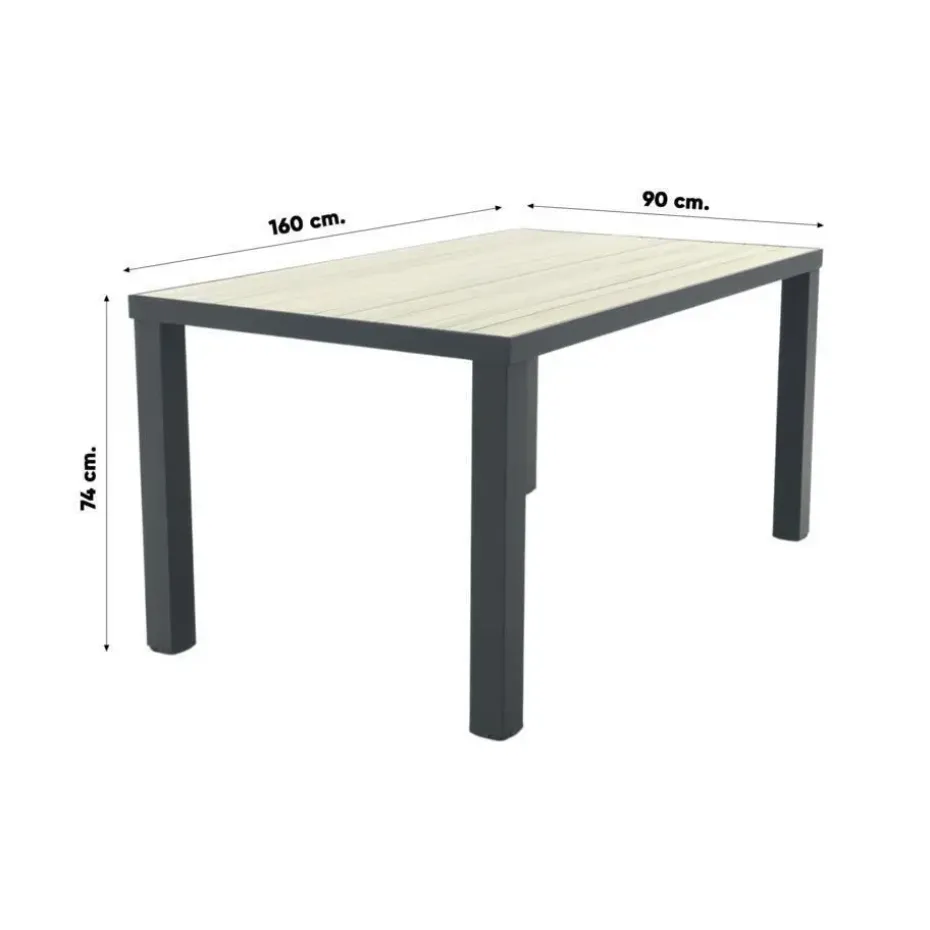 Eigenschappen Nola tuintafel 160×90 cm. – Antraciet/Houtlook