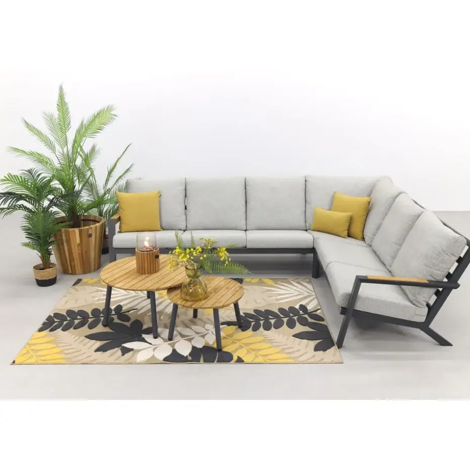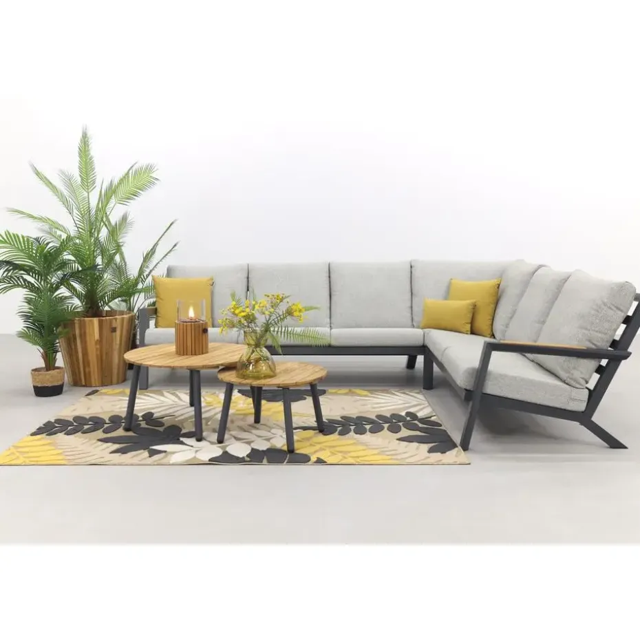 Zoek jij een luxe loungeset voor een betaalbare prijs? Dan is de Santos/Mindo loungeset de ideale keuze! Deze loungeset straalt een tijdloze charme uit door de strakke lijnen en antraciete kleur. Met de teakhouten details krijgt deze set toch een vleugje warmte mee. Dit teakhout zie je terug in de armleuningen en het tafelblad. Hierdoor past dit geheel ook echt perfect bij elkaar. De Mindo tafels zijn licht van gewicht en daardoor makkelijk te verplaatsen. Ook in jouw tuin hebben staan? Bestel direct online!