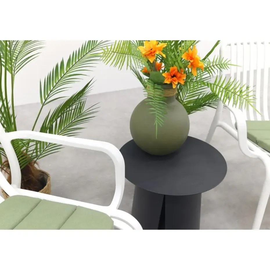 De Velora koffietafel Ø45 cm is de ideale keuze voor een compacte loungehoek. Dankzij het lichte aluminium in de kleur ‘royal grey’ heeft deze tafel een stoere uitstraling, terwijl de massieve onderkant met split zorgt voor een modern en uniek design. Door het lichte gewicht is de tafel gemakkelijk te verplaatsen, perfect om flexibel je loungehoek in te richten. Met een diameter van 45 cm past deze tafel perfect in kleinere ruimtes of als subtiele toevoeging aan je tuinmeubilair. Voor een speels effect kun je de tafel combineren met de grotere formaten van de Velora-serie: Ø70 cm en Ø90 cm. Zo creëer je een stijlvol en praktische set die bij elke tuin past!