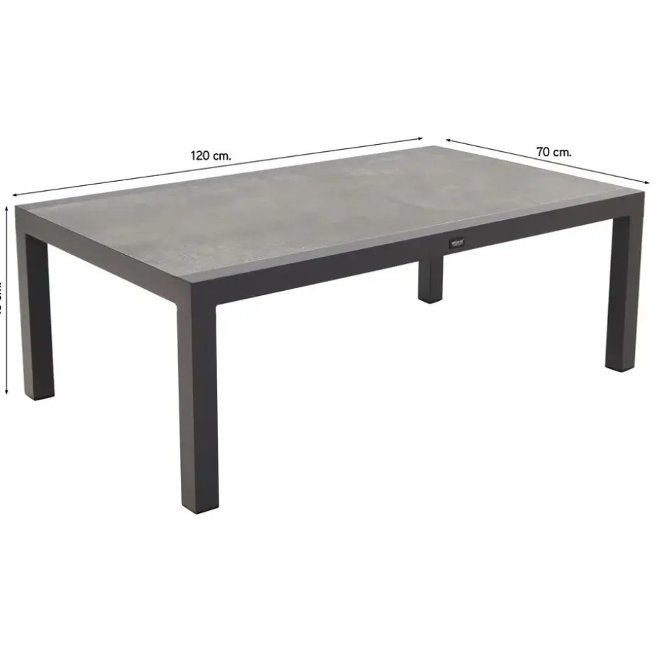 De Atlanta loungetafel heeft een stevig frame van aluminium en is afgewerkt met een antracietkleurige coating. Deze coating zorgt ervoor dat het frame kras- en stootvast is. Aluminium heeft als voordeel dat het licht in gewicht is, niet kan verroesten en weinig onderhoud nodig heeft. Het tafelblad is gemaakt van keramiek. Keramiek is een harde steensoort welke krasvast is, bestand is tegen hitte en UV licht. Perfect materiaal om te gebruiken als tafelblad. Het keramiek kun je eenvoudig schoon maken met een sopje en een zachte spons.