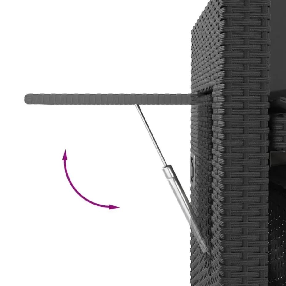 - Handige bijzettafel: dit tuinmeubilair heeft in de armleuningen inklapbare zijtafels met een gasveer, waardoor je altijd een handig plekje hebt om je benodigdheden binnen handbereik te houden.
