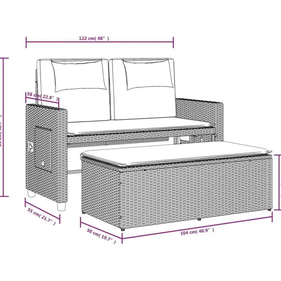 - Veelzijdige functionaliteit: dit tuinmeubilair kan als 2-zitsbank of als slaapbank worden gebruikt. Je kunt er gemakkelijk een bed van maken door de rugleuning achterover te klappen en de voetenbank onder de bank vandaan te trekken. De steunpanelen achter de rugleuningen maken het bed stabieler.
