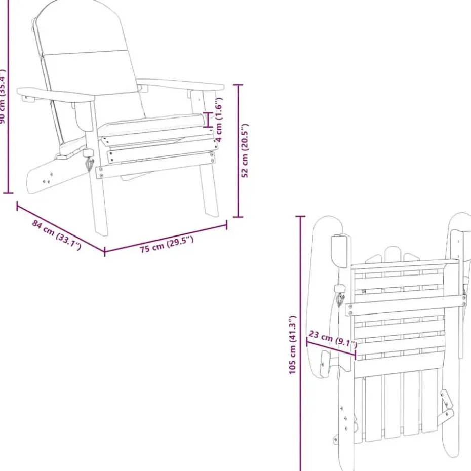 - Comfortabele zitervaring: de Adirondack stoel heeft meer een lighoek dan een rechtopstaande hoek en is zeer comfortabel om in te zitten. De rug- en zitkussens voegen extra comfort toe.
