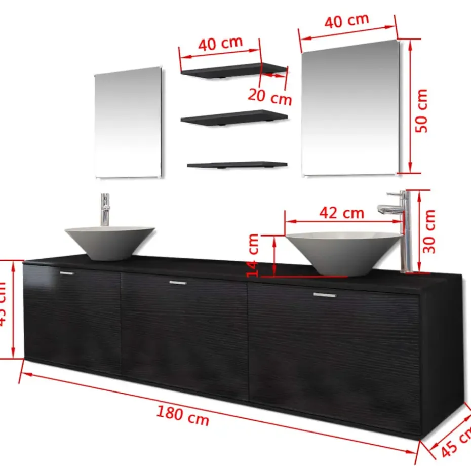 - Afmetingen wastafelkast: 180 x 45 x 45 cm (L x B x H)