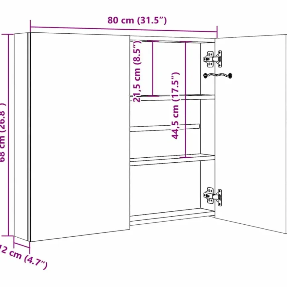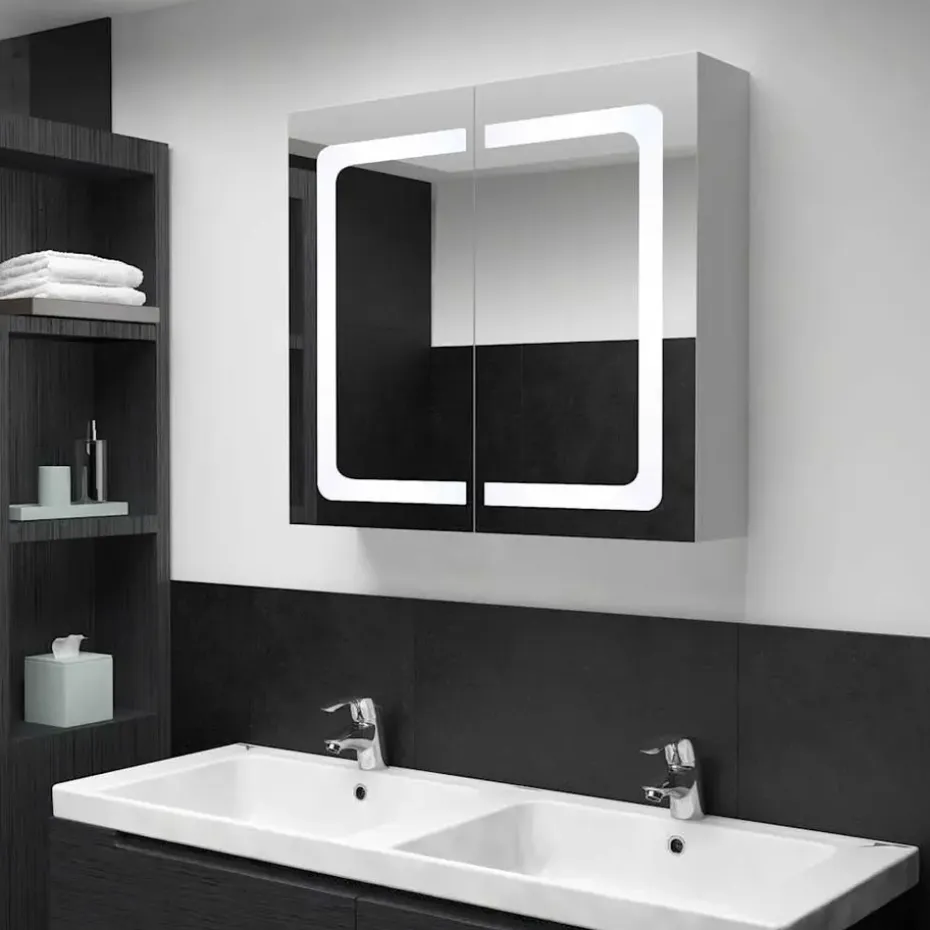 Het kastje is gemaakt van hoogwaardig MDF met melamine-afwerking, waardoor het zeer duurzaam is. Het kastje heeft een energiezuinige LED-lichtstrip waardoor er genoeg licht is om jezelf op te maken en je huid te verzorgen. Hij verlicht zowel de ruimte als jou. Je schakelt het licht eenvoudig in/uit met de onderste knop. Het kastje heeft verder 2 deuren en 3 schappen, voor extra opbergruimte in de badkamer. Ze bieden gemakkelijk plaats aan je essentiële toiletartikelen en badproducten, zoals zeep, shampoo, tandpasta, enz.