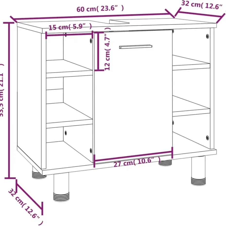 - Totale afmetingen: 60 x 32 x 53,5 cm (B x D x H)