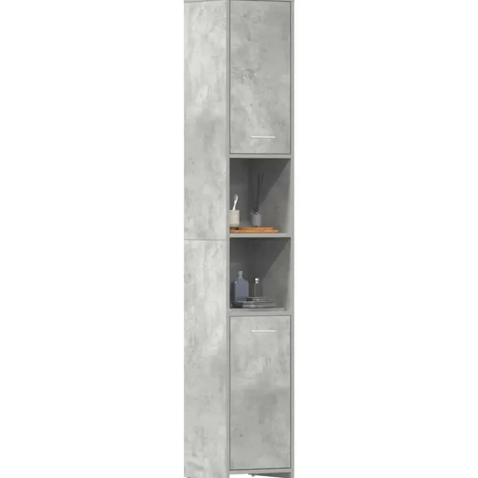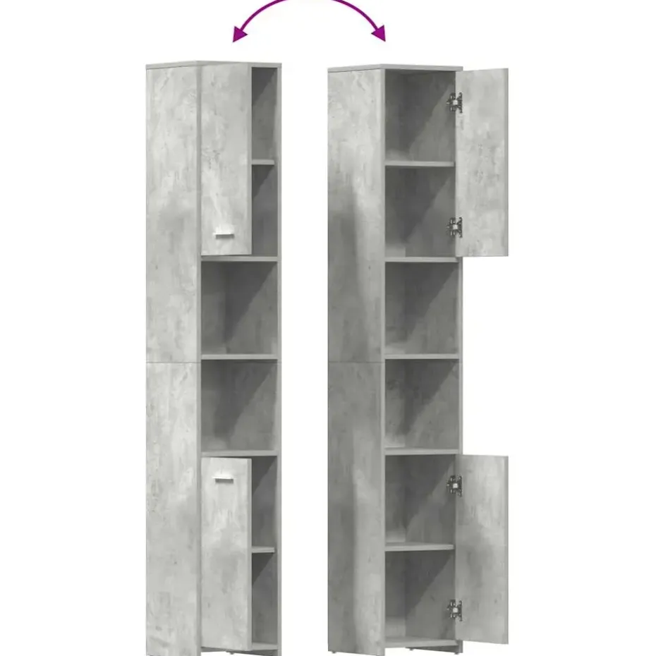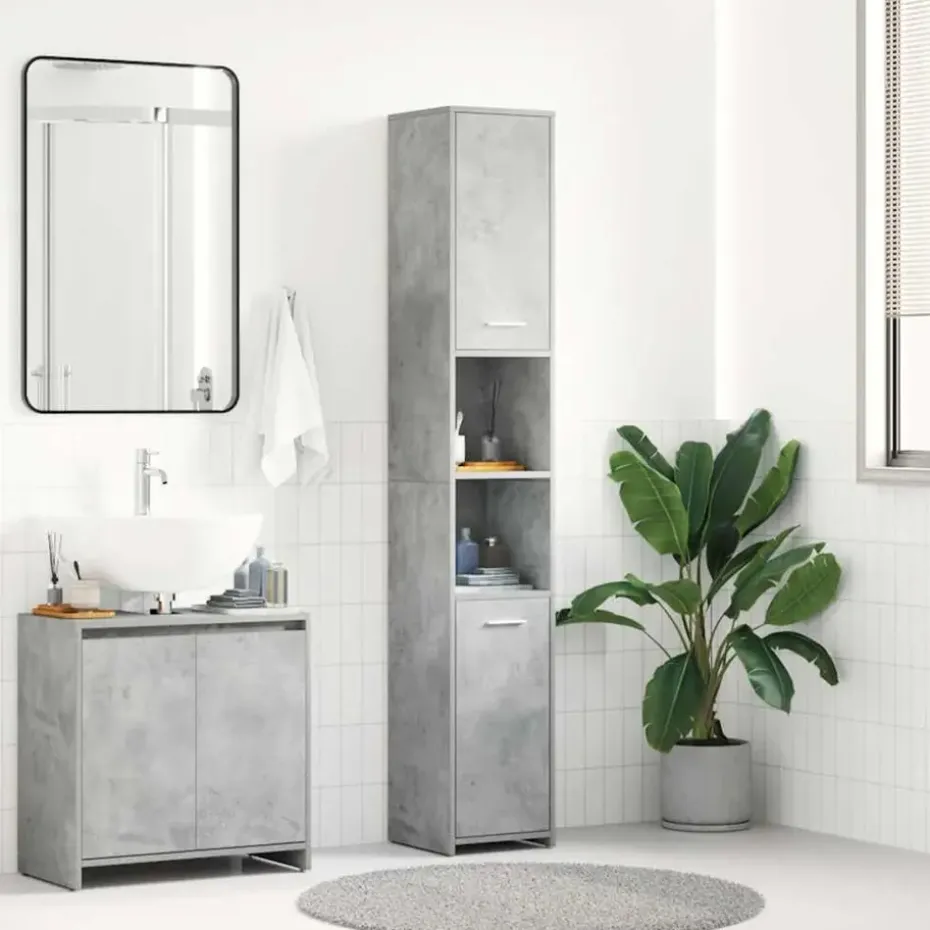 Deze chique kast is gemaakt van bewerkt hout, waardoor hij stevig en stabiel is. De badkamerkast heeft 3 vakken en 2 deuren, waardoor je verschillende opbergopties en extra ruimte hebt om dingen in je badkamer op te bergen. Elke deur heeft een handgreep voor gemakkelijk openen en sluiten. De kast is eenvoudig schoon te maken met een vochtige doek.
