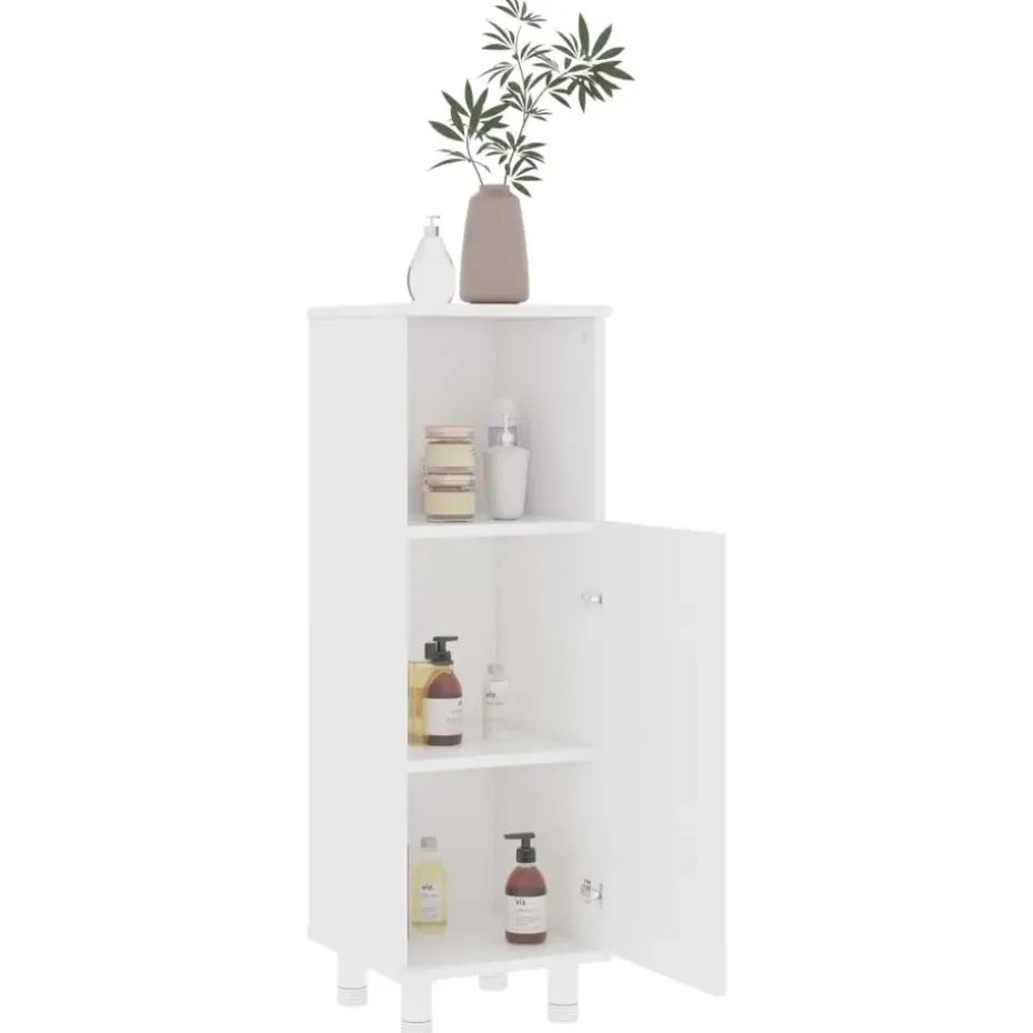 Deze chique kast is gemaakt van bewerkt hout, waardoor hij stevig en stabiel is. Voldoende opbergruimte: de badkamerkast heeft 3 vakken en 1 deur, waardoor je verschillende opbergopties en extra ruimte hebt om dingen in je badkamer op te bergen. De deur heeft een handgreep voor gemakkelijk openen en sluiten. De kast is eenvoudig schoon te maken met een vochtige doek.