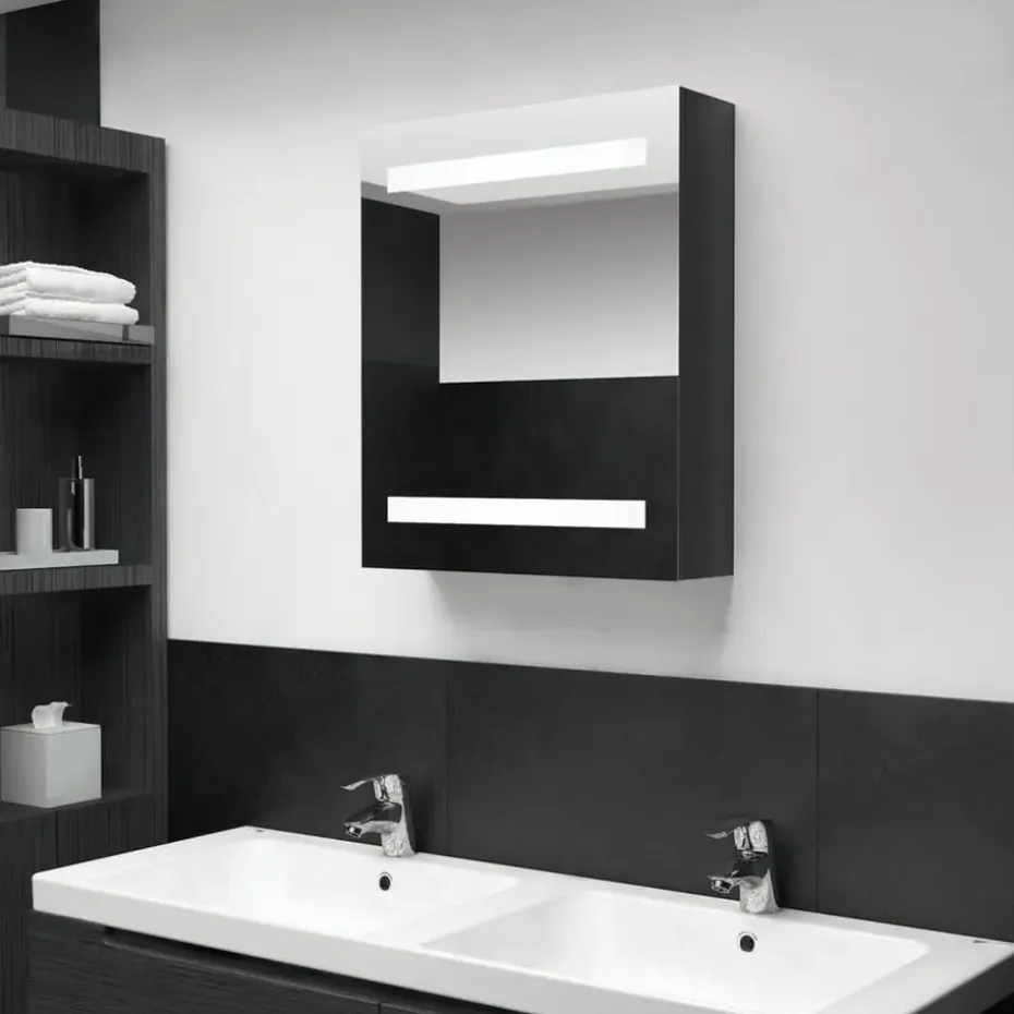 De wandkast is gemaakt van MDF met melamine-afwerking, waardoor hij zeer duurzaam is. Dankzij de energiezuinige LED-lichtstrips is er genoeg licht om jezelf op te maken en je huid te verzorgen. Ze verlichten zowel de ruimte als jou. Het kastje heeft 3 schappen die voldoende ruimte bieden voor al je toiletartikelen en schoonheidsaccessoires. Je kan het licht eenvoudig in-/uitschakelen met de knop aan de onderkant. Het kastje is stijlvol en functioneel, en is een blikvanger in elke ruimte!