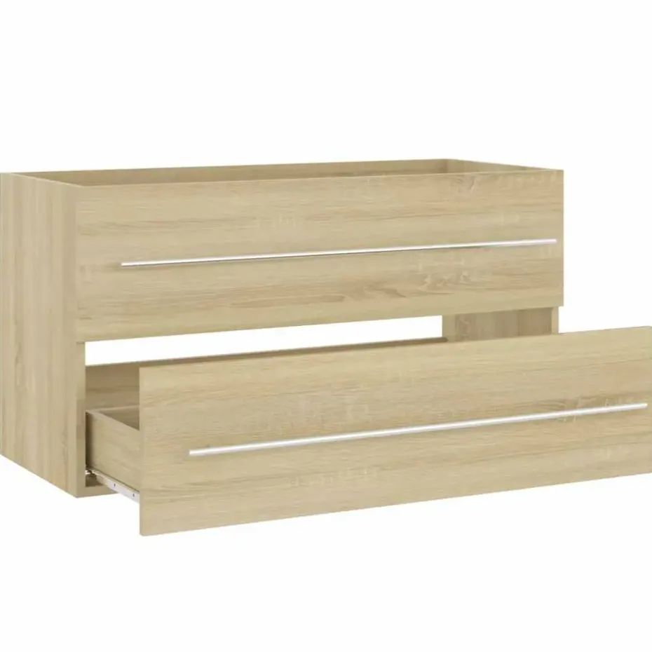 De meubelset, bestaande uit een spiegel en een kast, is gemaakt van duurzaam en stabiel spaanplaat. De chique kast is voorzien van 1 lade en biedt voldoende opbergruimte om spullen in je badkamer op te bergen. Het blad van de kast is ideaal voor het plaatsen van een wastafel. De spiegel geeft je interieur een prachtige uitstraling. Deze badkamerset is gemakkelijk schoon te maken met een vochtige doek.