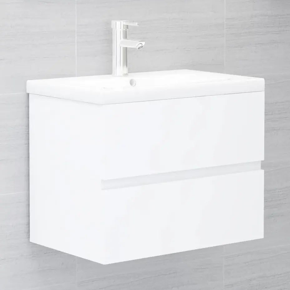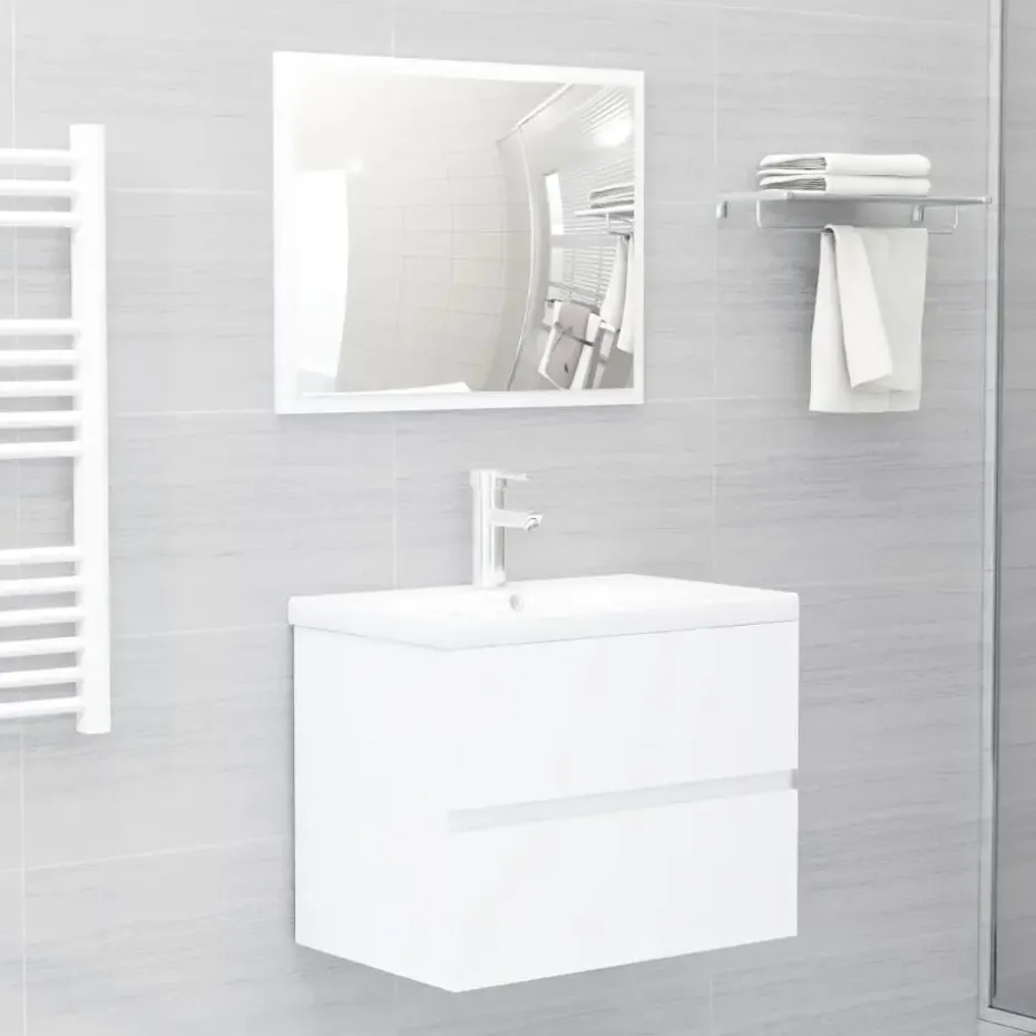 Deze trendy badkamermeubelset, bestaande uit een wastafelkast, een inbouwwastafel en een spiegel, past perfect bij je badkamer of wasruimte. Hij heeft een opvallende, opgeruimde uitstraling.