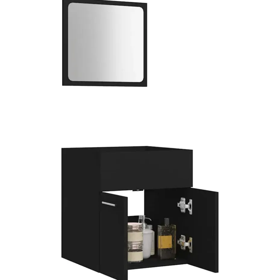 vidaXL – Badkamermeubelset – Zwart – Bewerkt hout