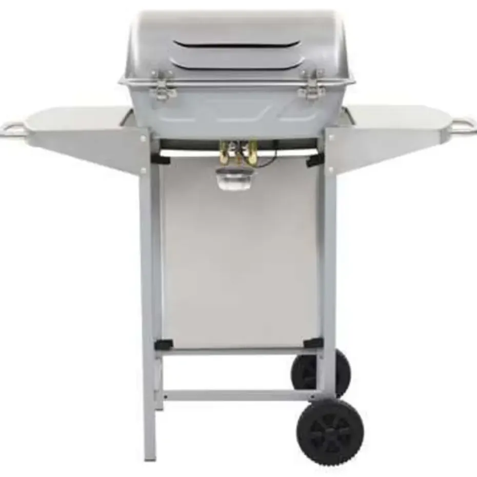Dankzij de gepoedercoat stalen behuizing met roestvrijstalen onderdelen heeft onze barbecue een strak en stijlvol ontwerp en is hij zeer duurzaam. Hij heeft een groot kookoppervlak en een stevige kap. Twee bijzettafels bieden extra ruimte voor het maken van sauzen of je favoriete bijgerechten. Deze barbecue is onmisbaar voor je buitenactiviteiten!