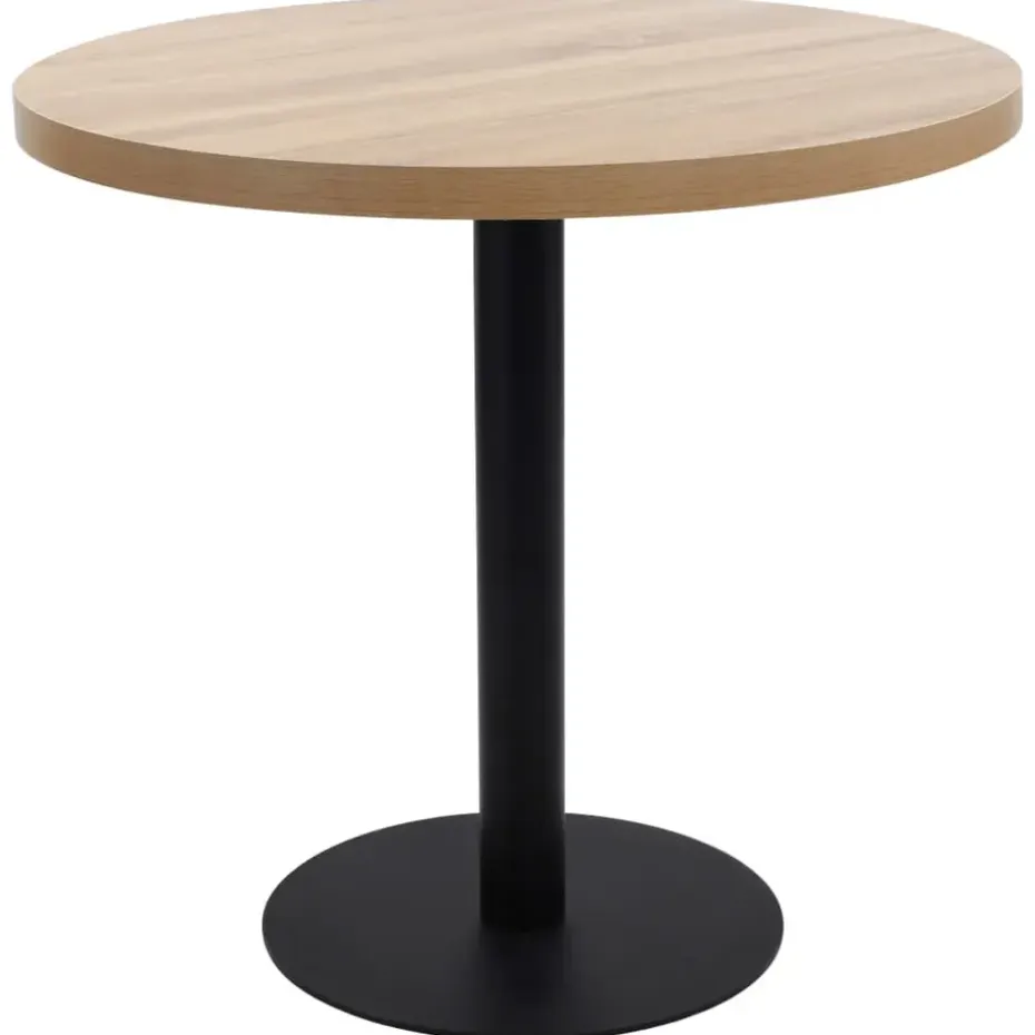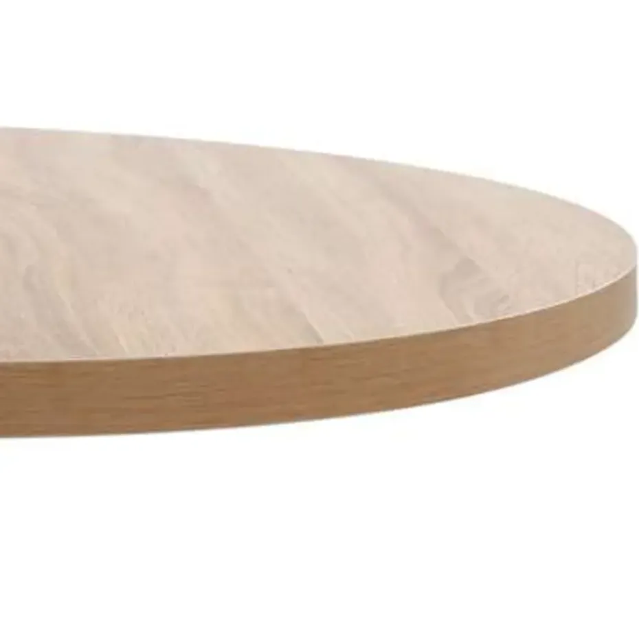 Het tafelblad is gemaakt van MDF met houtnerfpatroon en wordt ondersteund door een stalen poot en basis. Hij is gemakkelijk schoon te maken met een vochtige doek. Gebruik de tafel als aanvulling op je interieur, restaurant, koffiebar of lunchroom.